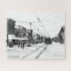 Enjoy assembling this jigsaw puzzle from line art by Maggie LaNoue of Marshall downtown with the interurban. Marshall Michigan's historic downtown was once a destination on the interurban railroad. In their heyday, one could ride interurbans great distances in the southern Michigan interurban system. At a time when most roads were unpaved, interurbans provided a predictable, durable and comfortable way to travel and move products. The interurban opened up the era of commuting. This view is of Marshall, Michigan.