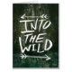 Hand lettered type, “Into The Wild” layered over forest photograph.