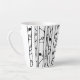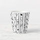A charming, elegant, graphic illustration of a wood, stripes of trees with interlacing leaves and branches in black and white.