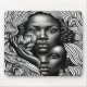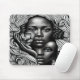 This striking mouse pad features a jaw-droppingly fabulous display of black and white artistry. It showcases two stunning African American young women, each with a mesmerising blue eye. The design takes you on a wild, psychedelic ride filled with intricate midcentury modern patterns, making it perfect for art enthusiasts and those looking to add flair to their workspace.