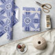Intricate blue and white geometric pattern wrapping paper