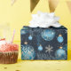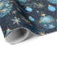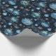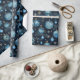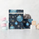 Intricate  blue Christmas baubles on a dark blue background and gold retro stars   - perfect for Christmas gift wrap