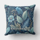 Intricate Blue & Green Botanical -Starry Dark Blue Cushion