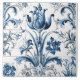 These intricate rustic indigo tiles showcase detailed floral designs in blue on a white background, reflecting classic craftsmanship.