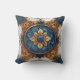 An ornate floral pattern features vibrant blue and gold swirls, with a central blossom and delicate detailing, showcasing a blend of elegance and artistry.