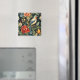 A vintage-looking illustration in the style of William Morris features a blue and white bird surrounded by lush, stylised flowers. Perfect for anyone who loves birds and nature.