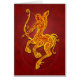 This stylised symbol for the zodiac sign of Sagittarius is decorated with intricate lines and dot patterns. The design features an elaborate archer with the body of a horse who is pointing his arrow down. This stunning yellow and red card is a beautiful and stylish way to show off your Astrological sign.