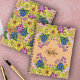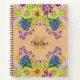 This is a beautifully designed, customisable notebook that perfectly blends modern style with classic elegance. The cover of the notebook is a warm beige, providing a neutral backdrop that allows the vibrant, symmetrical floral designs to truly shine. These intricate flowers, in hues of blue, yellow, and purple, radiate from the corners towards the centre, creating a visually pleasing balance. The centerpiece of the design is a large monogram “K”, which adds a personal touch to the notebook. Overlaying the monogram is the name “Kristina”, written in an elegant script font. This personalisation makes the notebook uniquely yours, perfect for journalling, note-taking, or as a special gift.