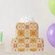Intricate orange and brown geometric pattern with floral motifs and star shapes, creating a warm, symmetrical, and ornate design reminiscent of tiles.