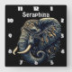 Intricate patterned elephant art square wall clock
