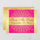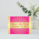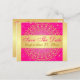 This save the date postcard in hot pink and gold has a circle medallion pattern with ornate gold scrolls and dots on it that matches the indian inspired wedding invitations shown below. If you would like any changes or need help with the text, please email niteowlstudio@gmail.com.