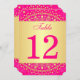 You MUST change the number "12" to each number that you need, add it to your cart and then repeat that process until you have all the individually numbered cards that you need in your cart. This double-sided table number card in exotic hot pink and gold has a large central gold scroll circle medallion pattern on it with ornate swirled hearts detailing on it with gold stars and dots that lay over top of a fuchsia background with another layer of fine bright lavender purple swirls and scrolls on it.****PLEASE NOTE that none of the elements on this invitation are raised or embossed. Everything is printed flat. This table number card would be perfect for a spring, summer, fall, or winter Indian, Hindu, or Muslim wedding or engagement ceremony, and would also work well for other formal events requiring class and taste. You can frame it or stand it on an easel or arrange it in your centre pieces. If you select the triple thick cardstock it will not need a frame as it will be very sturdy on its own. It is shown here on basic paper. If you want a heavier weight paper, I suggest the metallic ice paper, which would give it a lovely opalescent lustre. I do NOT suggest using the metallic gold paper, as it is a very dark brassy gold that will really alter the colour of the design. ALSO, if you re-size the invitation, or if you change fonts, or the size of the font, some of the design and/or text may get cut-off. Everything will print as you see it on your monitor. I will not see your invitation, and Zazzle will NOT correct anything (typos, alignment etc.). The text and paper type are customisable. If you need help with this invitation, please email me BEFORE you place your order. If you require any other matching items, or would like any other design elements added to it, such as Ganesh, or a symbol etc. please email your request to niteowlstudio@gmail.com.