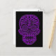 Intricate Purple Sugar Skull on Black Postcard