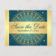 Intricate Teal, Gold Scrolls Save the Date Card