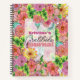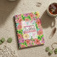 This is a vibrant and customisable notebook, perfect for those who appreciate the beauty of nature and the power of gratitude. The cover is a canvas of artistic expression, adorned with a lush garden of hand-drawn flowers blooming in an array of colours. The blossoms, in shades of pink, orange, green, and yellow, create a lively and cheerful atmosphere. The intricate floral designs are not just visually pleasing, but they also add a sense of depth to the overall design. In the centre of the cover, there’s a white rectangular space containing customised text written in an elegant mix of cursive and standard fonts, adding a personal touch to the notebook. This suggests that the notebook is designed for jotting down daily gratitudes or positive reflections, making it a perfect tool for mindfulness and personal growth.