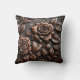 Intricate Wood Carving of Roses on Brown Panel Cushion