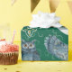 Illustrated woodland animals in red and blue, including foxes, bears, owls, and deer, are adorned with intricate patterns on a black background.