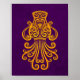 Intricate Yellow Aquarius Zodiac on Purple Poster