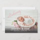 Elegantly sweet birth announcements feature your favourite newborn photo in full bleed, baby's name, birth stats and your names in white (or any colour and font you want) and two grey gradient layers to choose from to put under your text, if needed, so it is easy to read. Change the background colour to any colour that suits your photo and use or delete the roses overlay. You can add more photos on the back, too!