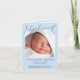 A simple pastel blue baby boy folded card birth announcement. The front features your newborn's photo, full name, arrival date and birth stats and "Introducing" written in a stylish script ending with a heart flourish. On the inside of the card you can add three additional photos and a personalised thank you or other message, with room for a handwritten note on the left.