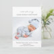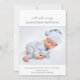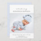 Share the wonderful news of the arrival of your precious new baby with this custom photo birth announcement card. It includes a text template with all the details, baby name, birth stats, and parents names as well as a photo template for uploading a photo of your new little bundle of joy. This design has a clean modern look that you'll be proud to share with friends and family. The back of the card has a cute white stripes pattern with a light blue background. You can change the background colour to any colour of your choice by choosing the "customise further" option at the bottom of the design template.