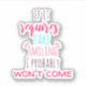 The stick looks amazing. Unfortunately, it would not stick on our suitcase as it was textured. When we found a non-textured (smooth) suitcase, the sticker stuck and looks great. The printing looked awesome.