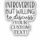 Introverted but willing to discuss CUSTOM TEXT