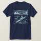 Two-tone graphic design of kayak in arctic scene. Pale blue design for printing on navy, black or grey shirt.