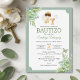 Celebra el Bautizo de tu bebé con esta Invitación de angelito con Hojas Verdes. Esta invitación es perfecta para una ceremonia religiosa de Bautizo.