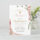 Pink floral Floral Baptism invite in Spanish. Invitación de Bautizo para niña