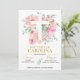 Esta es una invitación de bautizo sofisticada, elegante y minimalista. Con diseño flores en tonos rosas y dorados.