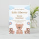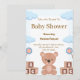 Elegant Baby Shower Invitation design featuring a soft watercolor aesthetic in sage green, cream, and subtle gold tones. The layout showcases a cute teddy bear sitting in a hot air balloon surrounded by fluffy clouds, delicate stars, and botanical greenery. A luxurious arched frame adds sophistication, while modern script and serif typography create a stylish personalized look. Perfect for celebrating a baby boy, baby girl, or gender-neutral shower. Ideal for Zazzle custom invitations, printable cards, and keepsake stationery.
