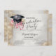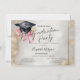 Watercolor floral graduation cap with pink bow, and gold frame on a gray and gold background.