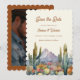 Modern Desert Cactus Photo Save the Date - Announce your love story with a touch of desert elegance and rustic charm! This enchanting "Save the Date" invitation captures the essence of romance against a breathtaking desert canvas. Imagine a sweeping desert landscape, where resilient cacti stand tall amidst a symphony of rugged mountains and delicate cactus blooms. The scene is bathed in the warm glow of sunlight, creating an ambiance that is both serene and stunning.