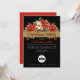 Annual Corporate Christmas Party Invitation. Red and white Poinsettia decorations on a golden ribbon with Christmas Party on a black background.