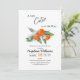 Baby shower invitations decorated with an illustration of a delicious tangerine branch with flowers in a watercolor sketch style.