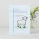 On a special occasion of a baby boy, invite your friends and relatives with this baptism blue invitation card. This has a baby sheep, perfect to invite your loved ones on a baby boy's christening, either a son, godson, grandson or nephew.