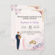 Celebrate your special day with this elegant Muslim wedding invitation, featuring a stylish illustrated bride and groom, soft pastel floral accents, and gold wedding rings for a meaningful touch. The clean layout, warm tones, and refined design make this invite perfect for modern Islamic weddings or multicultural celebrations.