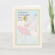 An invitation card to daughter's dance recital. The design is a hand drawn ballerina in a pink short dress and a band of flowers in her hair. The background is a hand painted light pastel, done with computer paints.