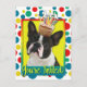 Invite your guests with this whimsical Boston Terrier Dog Greeting Card. With a cupcake balanced on it's head, this design is sure to bring a smile and giggles! BTW, This design has several versions, with different background colours. There is also a Happy Birthday version.