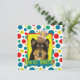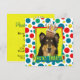 Invite your guests with this whimsical Collie Dog Greeting Card. With a cupcake balanced on it's head, this design is sure to bring a smile and giggles! BTW, This design has several versions, with different background colours. There is also a Happy Birthday version.