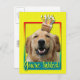 Invite your guests with this whimsical Golden Retriever Dog Greeting Card. With a cupcake balanced on it's head, this design is sure to bring a smile and giggles! BTW, This design has several versions, with different background colours. There is also a Happy Birthday version.