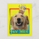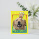 Invite your guests with this whimsical Golden Retriever Dog Greeting Card. With a cupcake balanced on it's head, this design is sure to bring a smile and giggles! BTW, This design has several versions, with different background colours. There is also a Happy Birthday version.