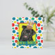 Invite your guests with this whimsical Pug Dog Greeting Card. With a cupcake balanced on it's head, this design is sure to bring a smile and giggles! BTW, This design has several versions, with different background colours. There is also a Happy Birthday version.