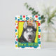 Invite your guests with this whimsical Siberian Husky Dog Greeting Card. With a cupcake balanced on it's head, this design is sure to bring a smile and giggles! BTW, This design has several versions, with different background colours. There is also a Happy Birthday version.