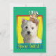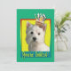 Invite your guests with this whimsical West Highland Terrier Dog Greeting Card. With a cupcake balanced on it's head, this design is sure to bring a smile and giggles! BTW, This design has several versions, with different background colours. There is also a Happy Birthday version.