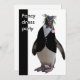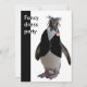 A penguin all dressed up in a feather bow tie, black waistcote and wearing a buttonhole. he's bound to be the best dress guest at your party