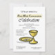 A gold chalice and paten are seen on this First Communion Invitation. Perfect card for boy or girl when you invite family and friends to their First Holy Communion and will be a nice theme for the party as well.