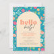 Cute neon florals in a distinctive retro style make this birthday party invitation pop! Blending pastel, pink, orange and blue on a vibrant blue background. A simple, yet chic invitation with the words "Hello, forty!" but can be edited for any age. It's easy to customise this design with all of your party details.