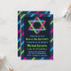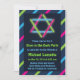 Very colourful and fun invitation that's great for a bar or bat mitzvah. The invitation features the star of david with lots of colour. Great for a dance party for teenagers only or a celebration for all!